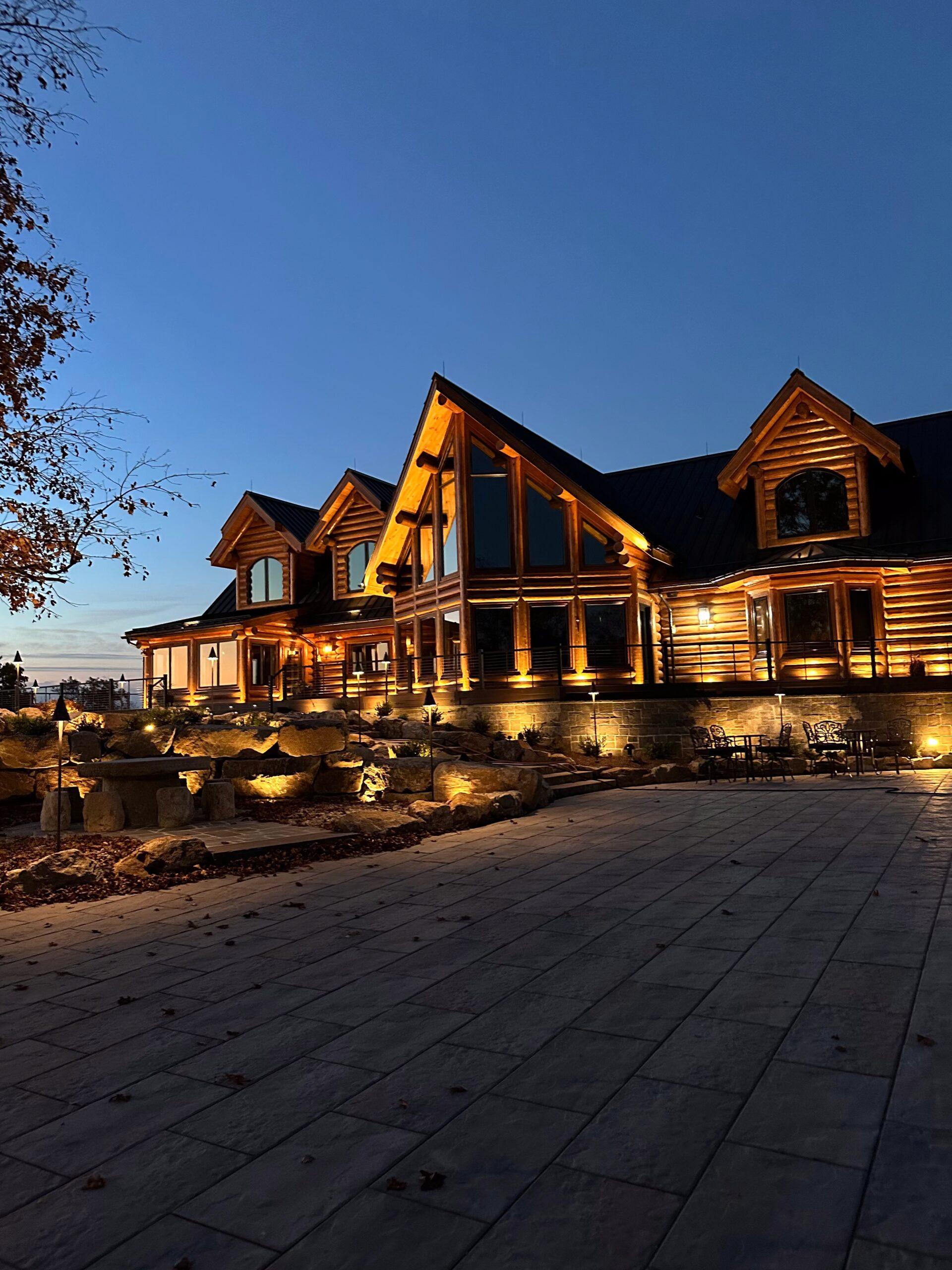 for evening use and seasonal transitions. Landscape lighting highlights architectural details and improves visibility,